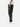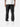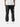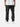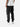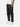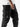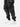 • Side view of black cargo pants with side pockets, ankle drawstrings, paired with a black t-shirt, and white sneakers.