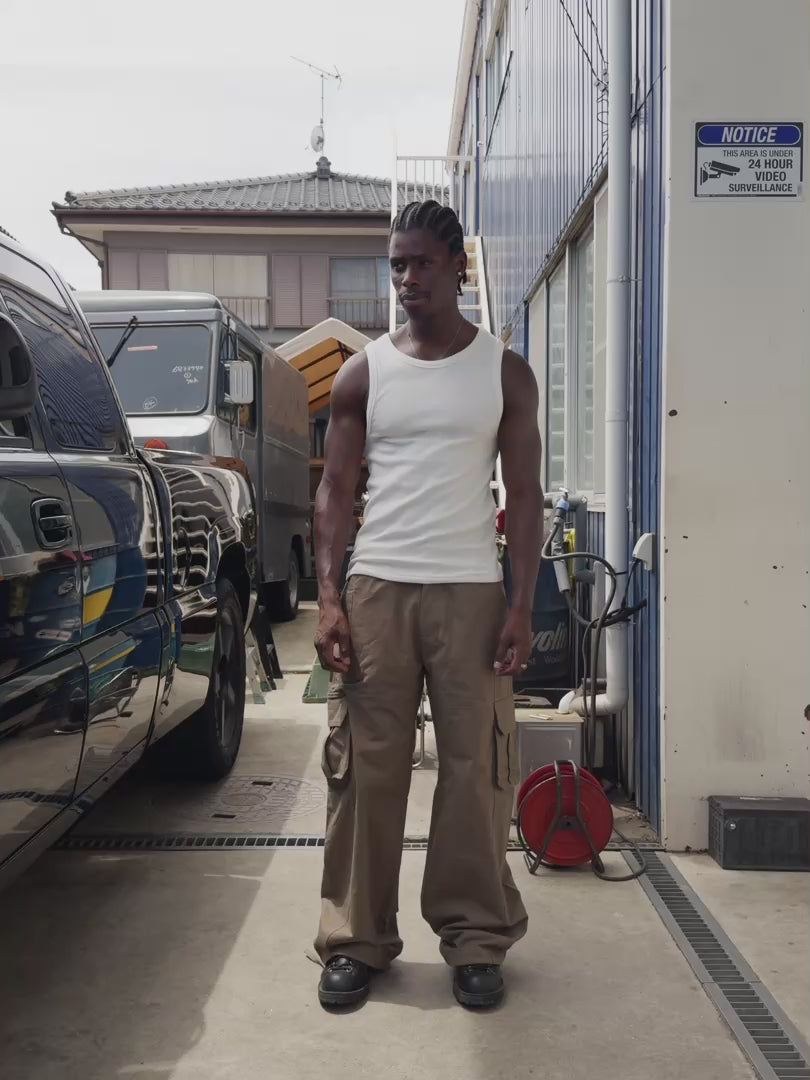 Crafted from cotton made twill, the W1 Cargo features slashed and seam pockets, pleated box pockets near the thigh, and adjustable buckles on the waistband.