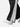 • Close-up of a black with white side panels track pants , a zip-up expandable seam to hem, paired with white sneakers.